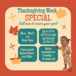 20Thanksgiving Week Special![]() ![]() | 21 | 22 | 23 | 24Closed for ThanksgivingClosed for Thanksgiving | 25 | 26 | ||||||||||||||